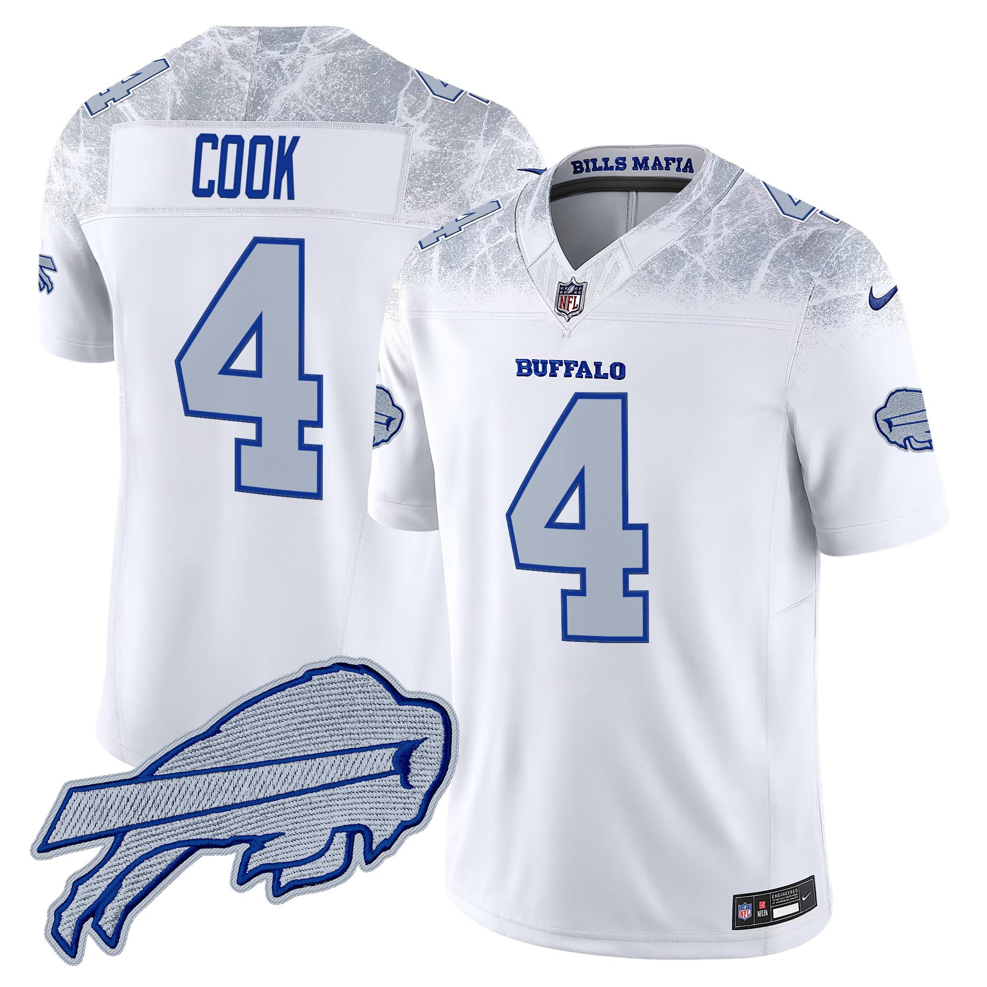 • Embroidered name, numbers and logos